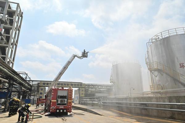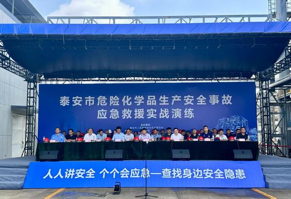 泰安市危险化学品应急救援实战演练上演“真功夫”6月30日,泰安市2025年危险化学品生产安全事故应急救援实战演练在山东德普新材料科技股份有限公司成功举行。市应急局党委委员、副局长李峰出席活动并讲话。应急、消防、公安、生态环境、卫健等部门及相关企业应急救援队伍、市危化品专业应急救援队参加演练并同步开展第二季度危险化学品(化工行业) 和烟花爆竹安全生产专业委员会会议。